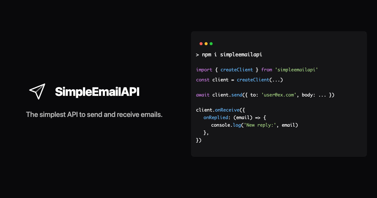 The simplest API to send and receive emails.